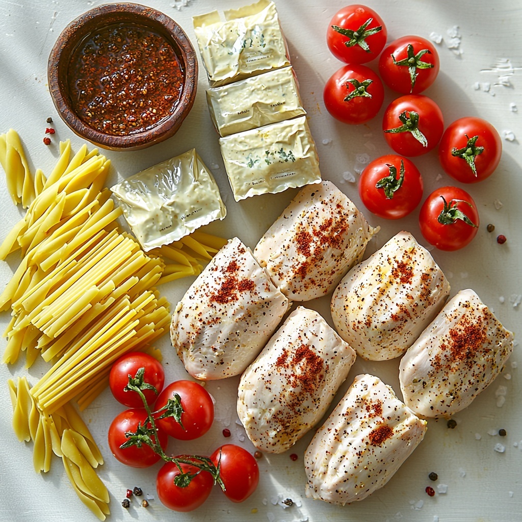 The magic of this recipe comes from a few simple, star-quality ingredients that each play a crucial role in balancing richness, spice, and freshness. Every item has a purpose, whether it’s delivering spice, creaminess, or that juicy pop of tomato that brightens each forkful.