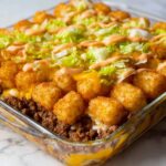 This recipe keeps things simple with everyday ingredients, each chosen to build layers of flavor, texture, and color. The combination of savory beef, crisp pickles, creamy dressing, and crispy tots comes together effortlessly to delight your taste buds.