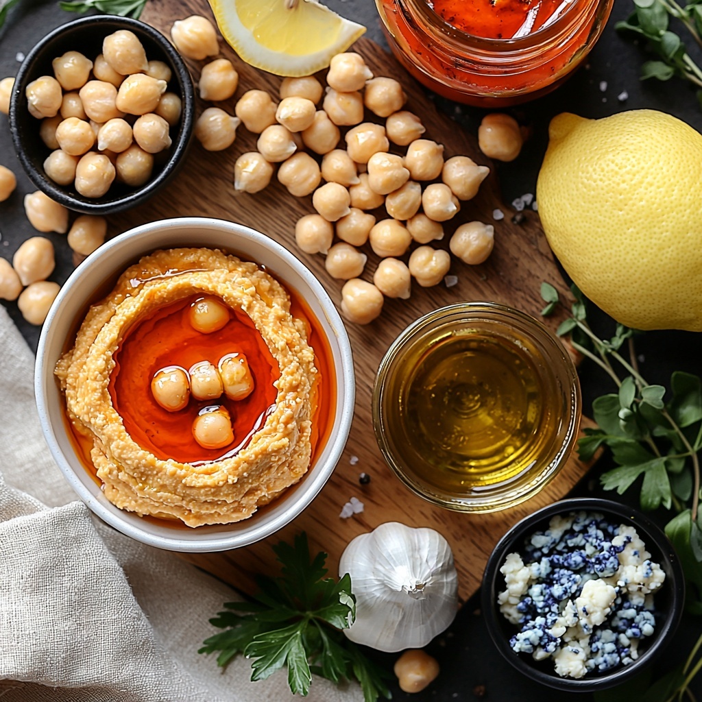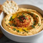 This Buffalo Hummus recipe combines creamy chickpeas with a spicy buffalo sauce twist, enhanced by garlic, tahini, and lemon juice. Topped with blue cheese crumbles and fresh herbs, it’s a perfect appetizer or snack that packs a flavorful punch in just 10 minutes.