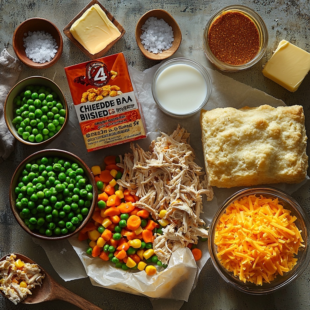 Gathering simple yet flavorful ingredients is key to making the magic of this pot pie happen. Each component plays an essential role, whether it’s adding richness, creaminess, or that signature cheddar bay biscuit touch that gives this recipe its charm.