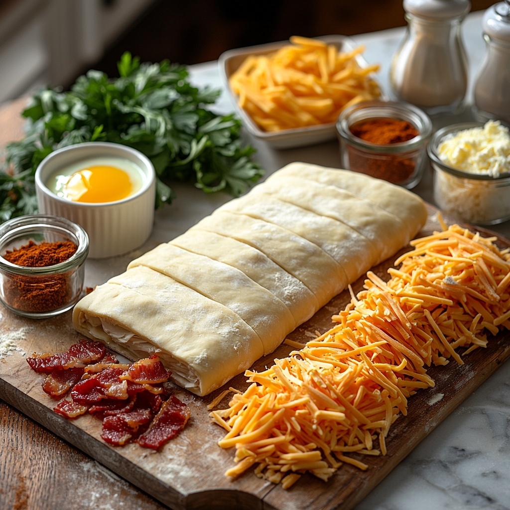 These ingredients are simple yet incredibly important, each bringing its own unique flavor, texture, or color to create the perfect Chicken Bacon Ranch Stromboli Recipe. From the creamy tang of ranch dressing to the crispy crunch of bacon, every component plays its part wonderfully.