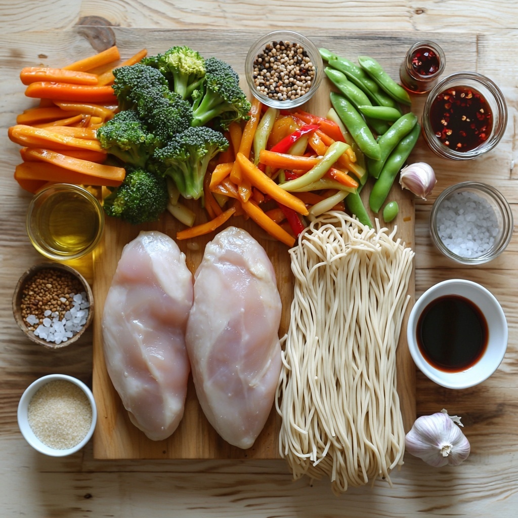Gathering the right ingredients is key to nailing that classic, authentic taste while keeping things quick and straightforward. Each component plays an essential role, from the juicy chicken to the fresh vegetables that add color and crunch, and the sauce that brings it all together with a lovely depth of flavor.