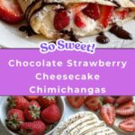 Delight in these decadent Chocolate Strawberry Cheesecake Chimichangas, combining creamy strawberry and chocolate spreads with fresh strawberries, wrapped in crispy fried flour tortillas and coated in cinnamon sugar for a perfect dessert treat.