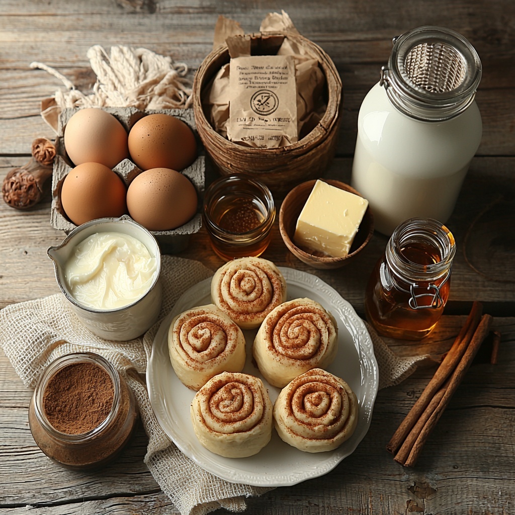 - Refrigerated cinnamon rolls (2 cans, 12.4 oz each): The star ingredient offering sweet, cinnamon-spiced dough that bakes into a tender, pillowy base.