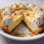 This Coconut Pie recipe features a creamy, tropical custard filling made with cream of coconut and shredded coconut baked in a flaky pie crust. The pie achieves a rich, smooth texture with a perfect balance of sweetness and coconut flavor, topped with toasted coconut flakes and whipped cream for a delightful finish. It’s an easy-to-make dessert that delivers a luxurious, crowd-pleasing treat in just over an hour.
