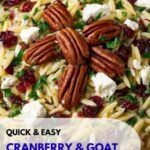 This Cranberry & Goat Cheese Orzo Salad is a quick and delicious 20-minute recipe perfect for a refreshing and vibrant meal. The combination of tender orzo pasta, tangy goat cheese, sweet dried cranberries, and crunchy nuts creates a flavorful and satisfying salad that can be served chilled or at room temperature, making it ideal for any occasion.