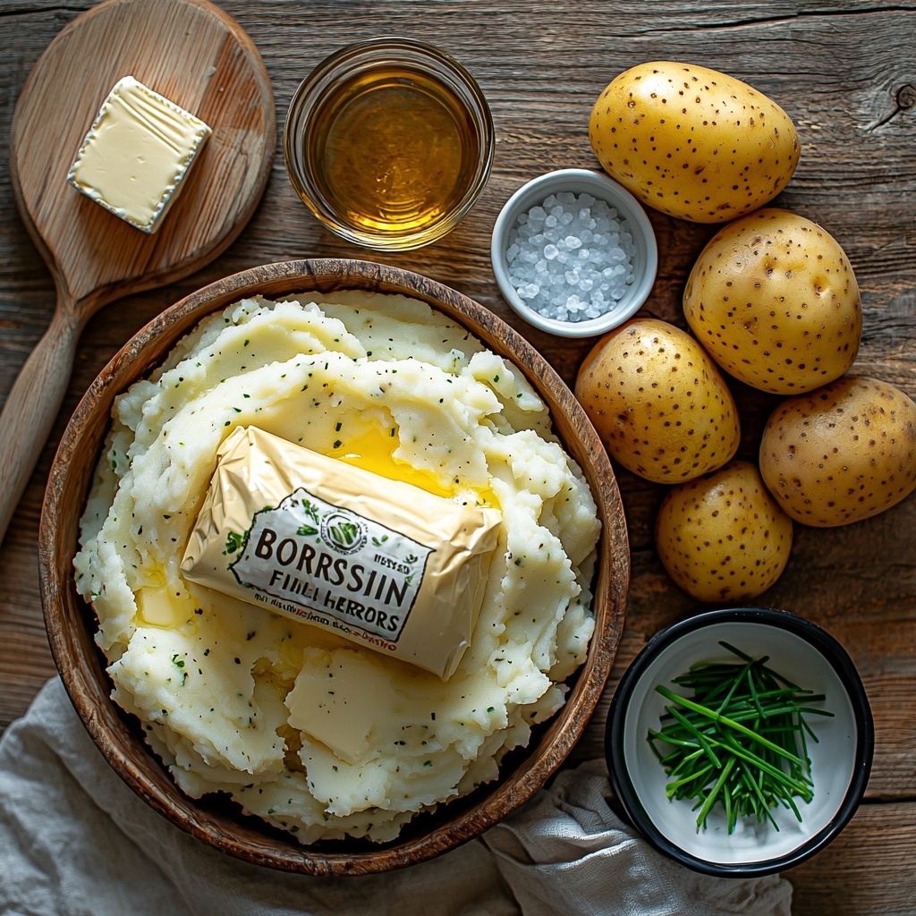 Gathering your ingredients for this recipe is delightfully straightforward. Each component plays an important role: from the hearty russet potatoes providing that perfect fluffy base, to the Boursin cheese that melts into a creamy, flavorful swirl. The chicken broth keeps the potatoes tender and infuses subtle savory notes, while butter and seasonings round out the richness.