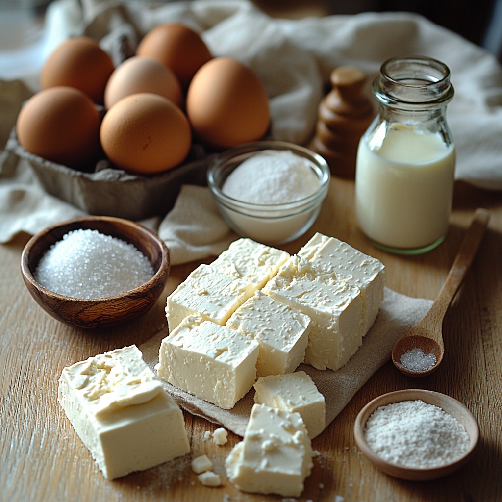 Every ingredient in this Creamy Burnt Basque Cheesecake Recipe plays a vital role in crafting its signature creamy texture and complex flavor layers. You’ll find these staples easy to source, but once combined, they create magic in the oven.