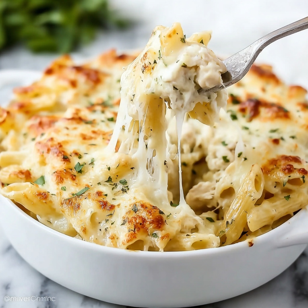 Chicken Alfredo Casserole is a creamy, cheesy, and comforting baked pasta dish featuring tender chicken, rich Alfredo sauce, and gooey melted cheese. Perfect for family dinners or meal prep, this casserole combines cooked pasta, shredded chicken, and a homemade Alfredo sauce baked until golden and bubbly, topped optionally with crunchy breadcrumbs and fresh parsley.