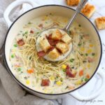 This Creamy Chicken Noodle Soup Recipe keeps beautifully in the fridge for 3 to 4 days. Store it in an airtight container to maintain freshness. For best results, keep the noodles separate and add them back when reheating to avoid them soaking up too much liquid.
