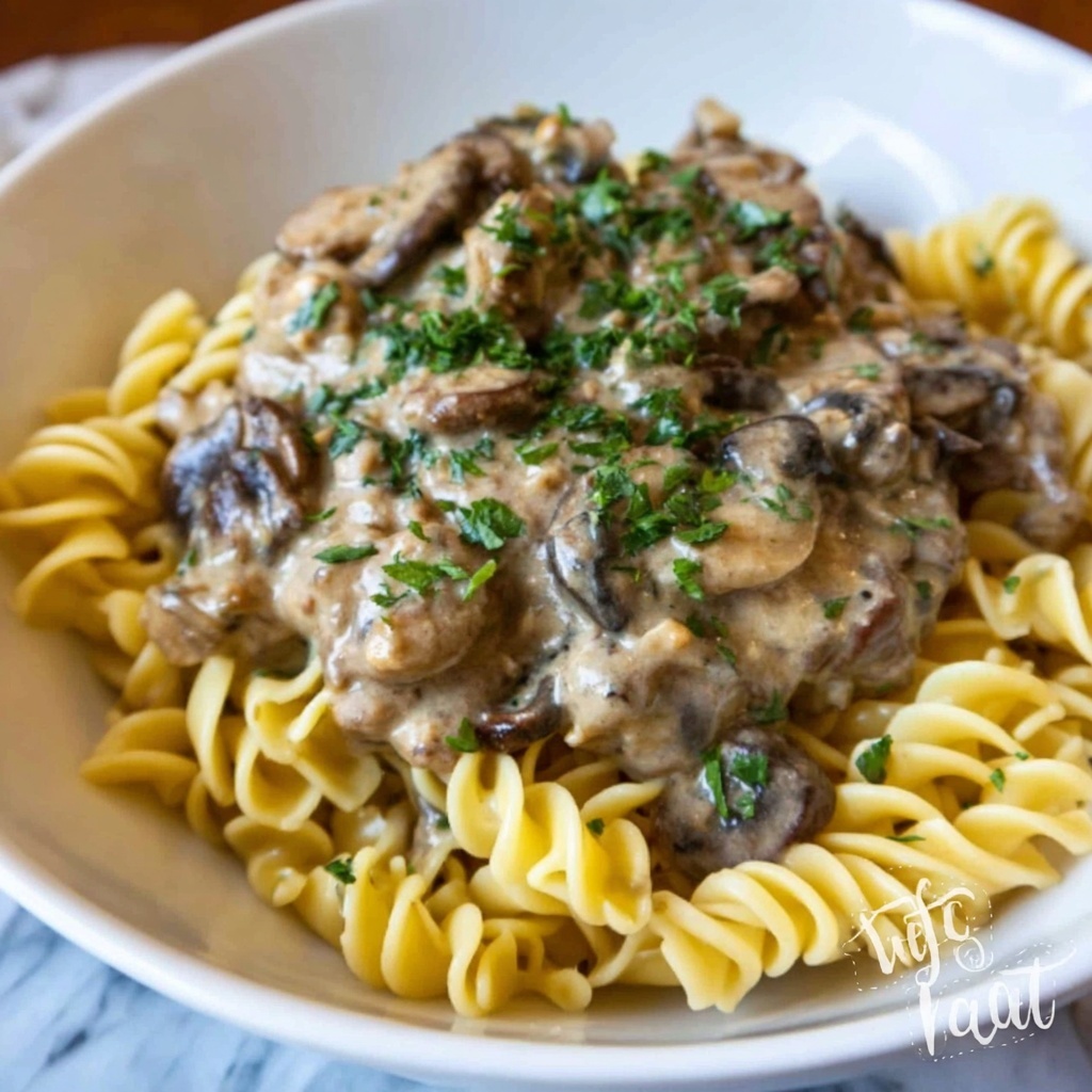 • Egg noodles: Tender and buttery, they cradle the stroganoff sauce beautifully.