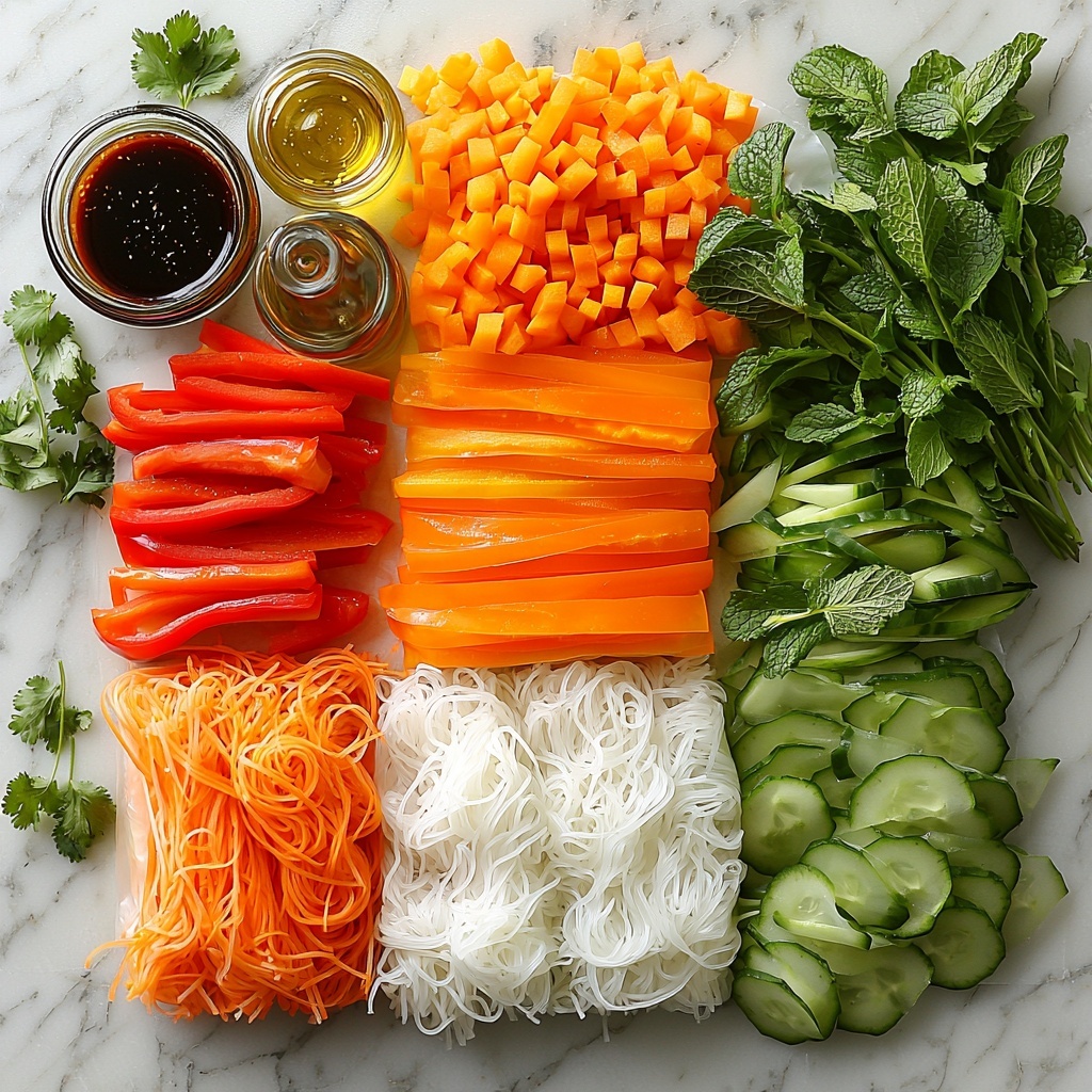 Start by cooking the rice noodles following the package instructions so they reach a tender yet firm texture. Allow them to cool completely to prevent sogginess inside the roll. While that’s happening, thinly slice your choice of fresh vegetables like carrots, bell peppers, and cucumbers—these provide both crunch and vibrant color that make every bite exciting.