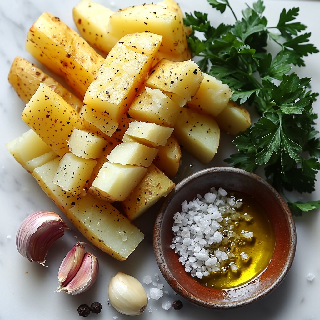 This Crispy Garlic Parmesan Fries Recipe uses a handful of straightforward, fresh ingredients that each play a key role in bringing the flavors and textures to life. From the starchy russet potatoes that crisp up beautifully, to the fresh garlic and parsley that add vibrant aroma and color, every item contributes to this snack’s crave-worthy profile.