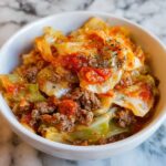This Crockpot Cabbage Roll Casserole is a comforting and hearty one-pot meal that captures all the flavors of traditional stuffed cabbage rolls without the hassle of rolling. Tender cabbage layers with savory ground beef, rice, and tomato sauce slow-cooked to perfection make for a delicious, easy-to-prepare dinner perfect for busy weeknights or cozy family meals.