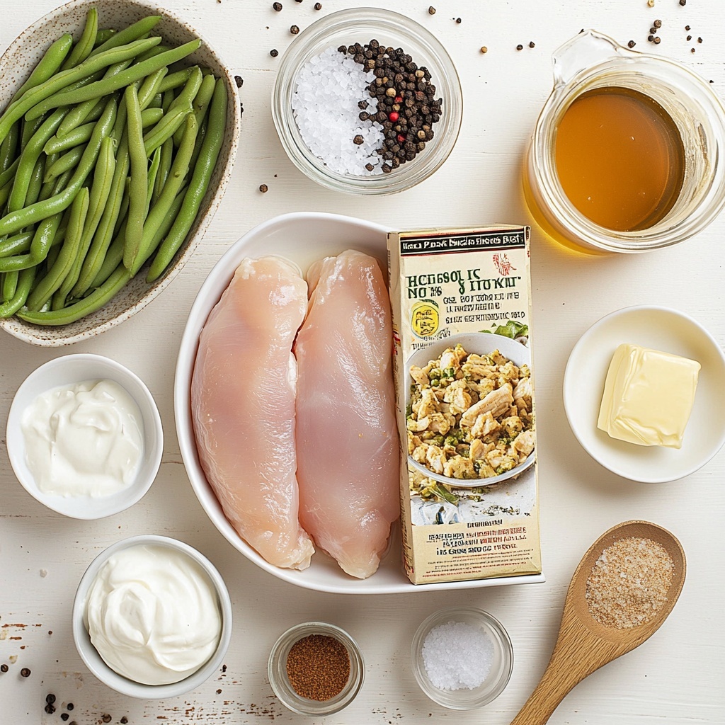 These ingredients are wonderfully simple but carefully selected to give you that ideal balance of flavor, texture, and vibrant color. Each one plays a key role: from juicy chicken breasts to creamy sauce and crisp green beans, everything combines beautifully to create a dish that’s both hearty and homey.