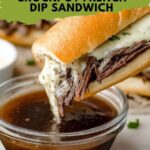 This Crockpot French Dip Sandwich recipe offers a tender, slow-cooked beef roast simmered with savory onion soup mix and garlic in rich beef broth. Served on toasted hoagie rolls with melted provolone cheese and accompanied by flavorful au jus for dipping, this easy-to-make dish is perfect for a comforting family meal.