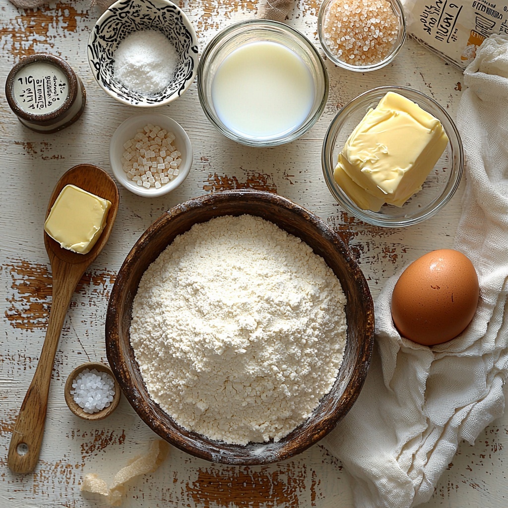 The magic of the Croissant Bread Loaf starts with simple, classic ingredients that work harmoniously together. Each component plays a crucial role — from creating that buttery, flaky texture to giving the loaf a golden, tender crumb.