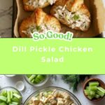 A quick and tangy Dill Pickle Chicken Salad featuring chopped cooked chicken, crisp celery, sweet onion, and dill pickles, all tossed in a creamy, flavorful dill pickle juice mayonnaise dressing. Perfect for a refreshing lunch or light dinner, served on its own, in sandwiches, or with crackers.