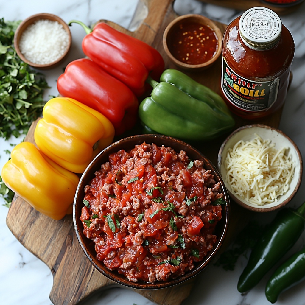 Gathering the right ingredients is key to making this Easy Air Fryer Stuffed Bell Peppers Recipe shine. Each component plays a vital role in balancing the savory, tangy, and cheesy flavors that define this dish.