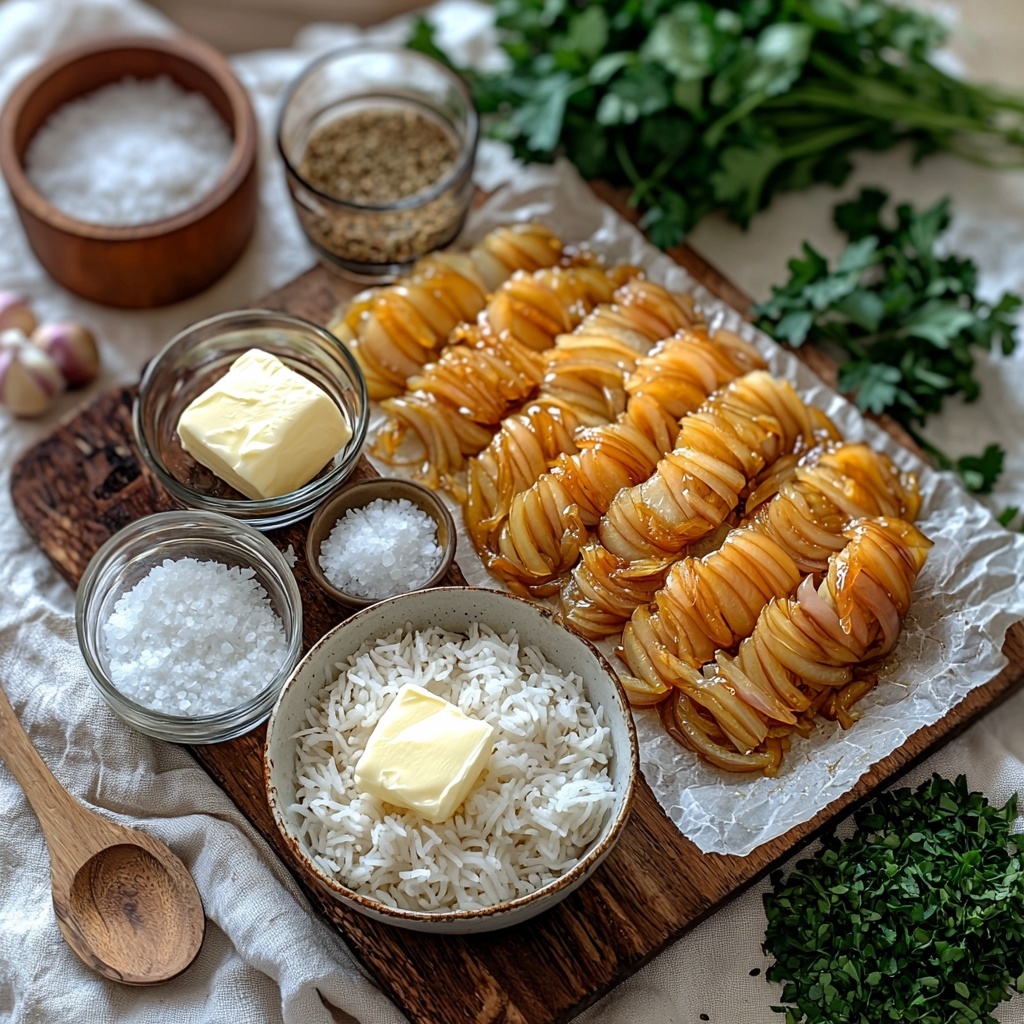 Gathering the ingredients for this French Onion Butter Rice Recipe is refreshingly straightforward, yet each component plays a key role in layering flavor and texture. The combination of sweet caramelized onions, smooth butter, and aromatic herbs creates a dish that’s both comforting and sophisticated.