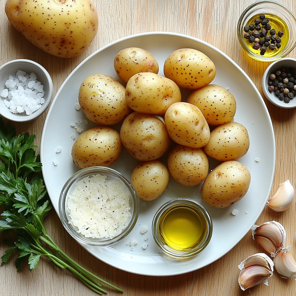 The magic of this Garlic Parmesan Smashed Potatoes Recipe comes from a handful of straightforward ingredients that each play a starring role in the final flavor and texture. From creamy baby potatoes to the sharp saltiness of Parmesan, everything works together to create that perfect balance.