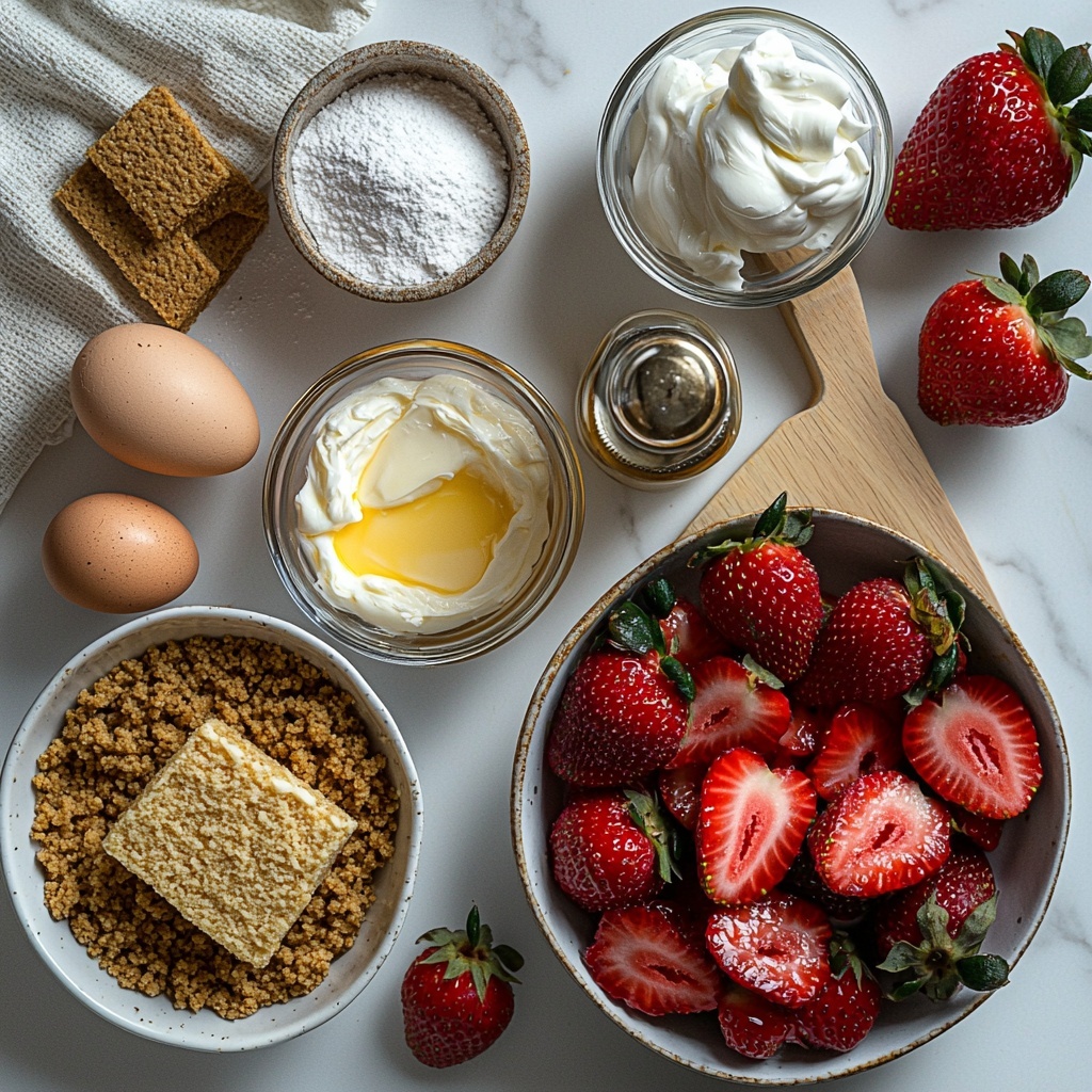 Each ingredient in this Heavenly Strawberry Shortcake Cheesecake Bars Recipe plays a crucial role in delivering its unique layers of flavor and texture. From the crunchy crust to the creamy filling and fruity compote, these simple but thoughtfully chosen components come together to create magic.