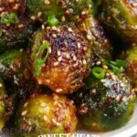 6. Garnish and Serve: Sprinkle sesame seeds and chopped green onions over the glazed Brussels sprouts for added texture and fresh flavor. Serve warm as a delicious side dish.