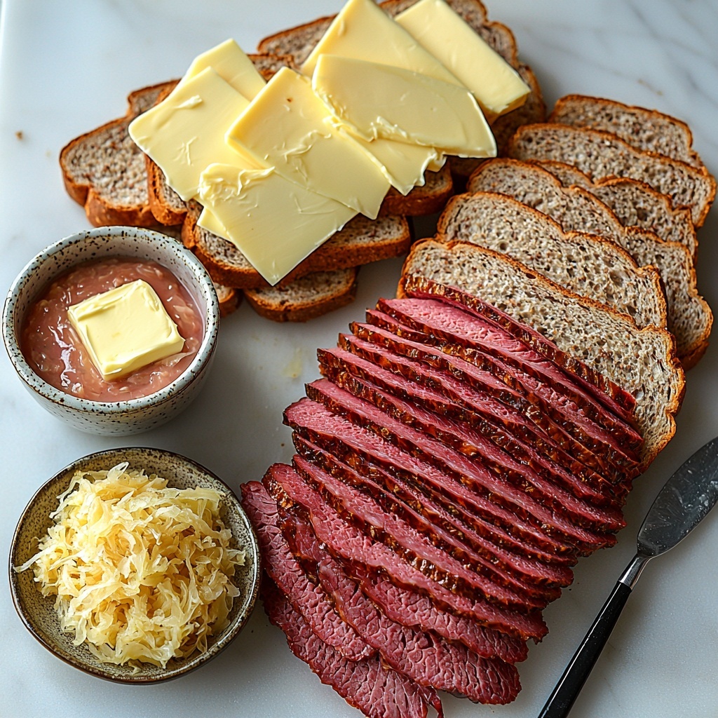 - Prepare the Bread: Spread softened butter evenly on one side of each rye bread slice. Flip the bread and spread one tablespoon of Thousand Island dressing on the other side of each slice for flavor and moisture balance.