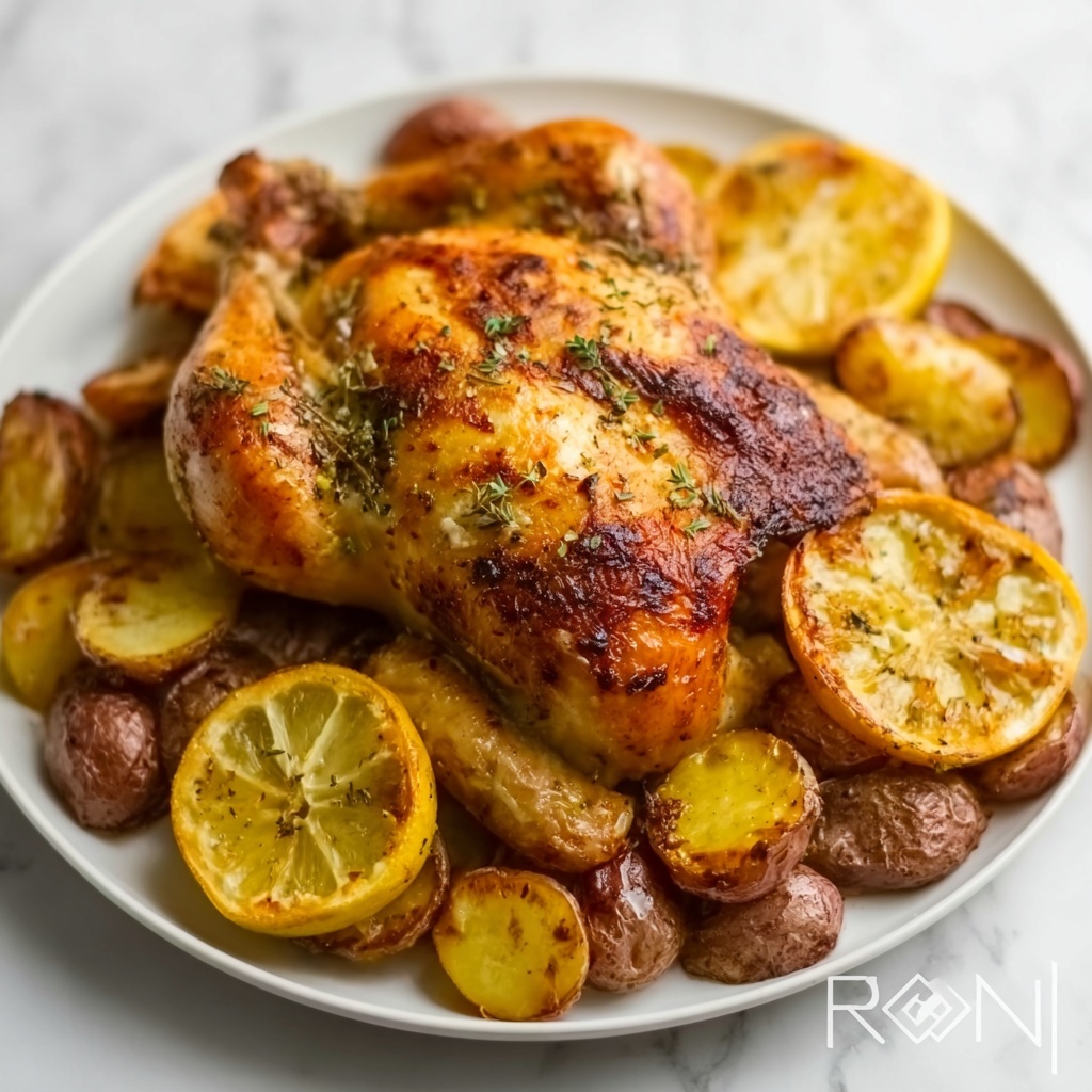 Try carving the chicken into neat portions and serving on a wooden board surrounded by roasted lemon wedges and fresh herb sprigs for a rustic, inviting look. Or slice the breast meat thinly to make hearty sandwiches, adding some crisp greens and a smear of tangy mustard or aioli.