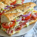 This dressing is the heart of the sandwich’s flavor magic. In a medium bowl, combine the mayonnaise, red wine vinegar, and extra-virgin olive oil. Stir in the dried oregano, basil if you’re using it, along with garlic powder or fresh minced garlic for aromatic depth. Season with kosher salt, black pepper, and optional red pepper flakes for a subtle kick. If you prefer a less sharp tang, add a pinch of sugar to round it all out. Whisk everything together until the dressing is smooth, creamy, and perfectly emulsified.