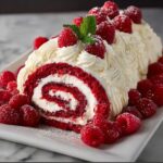 This Lemon Raspberry Velvet Roll Cake is a soft, airy, and fruity dessert perfect for any occasion. Featuring a delicate lemon-flavored sponge cake rolled with sweet raspberry jam, it offers a delightful balance of tartness and sweetness. Finished with a dusting of powdered sugar, this elegant dessert is as beautiful as it is delicious.