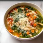 This Lemon Rosemary Chicken Soup is a fresh and vibrant take on classic chicken soup. Featuring tender shredded chicken, cannellini beans, and nutrient-packed kale, all infused with fragrant rosemary, thyme, and bright lemon juice, this soup is both comforting and refreshing. Perfect for a wholesome lunch or dinner, it’s easy to prepare and pairs beautifully with crusty bread and Parmesan cheese.