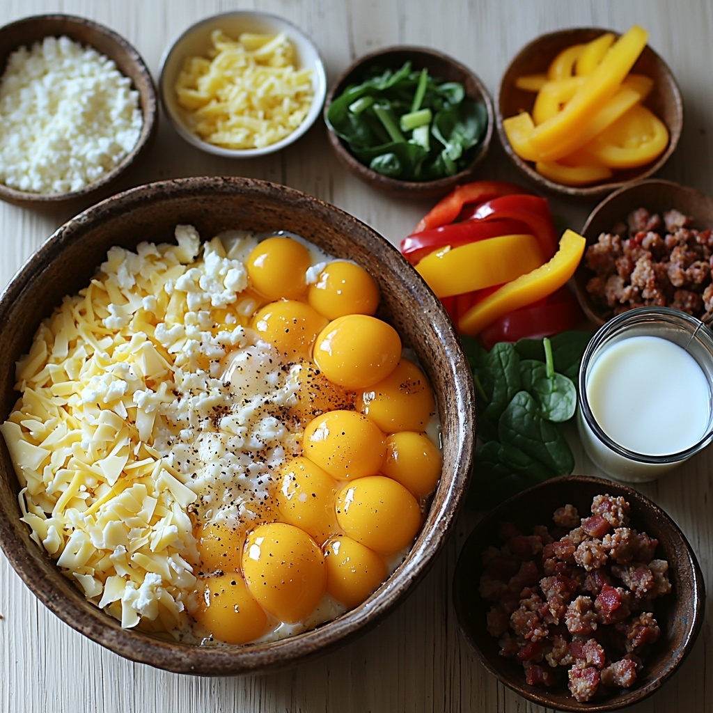 This recipe comes together with simple ingredients that each play an essential role in flavor, texture, and color. From fresh veggies that add brightness to the rich eggs and cheese, every component works harmoniously to create a balanced and satisfying muffin.