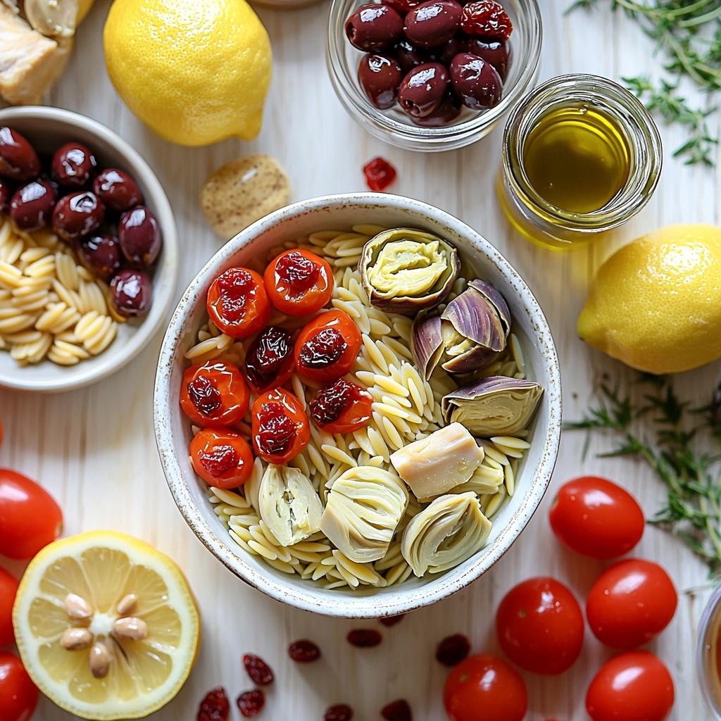 How to Make Orzo Pasta Salad with Cherry Tomatoes, Artichoke Hearts, Kalamata Olives, and Chicken Recipe