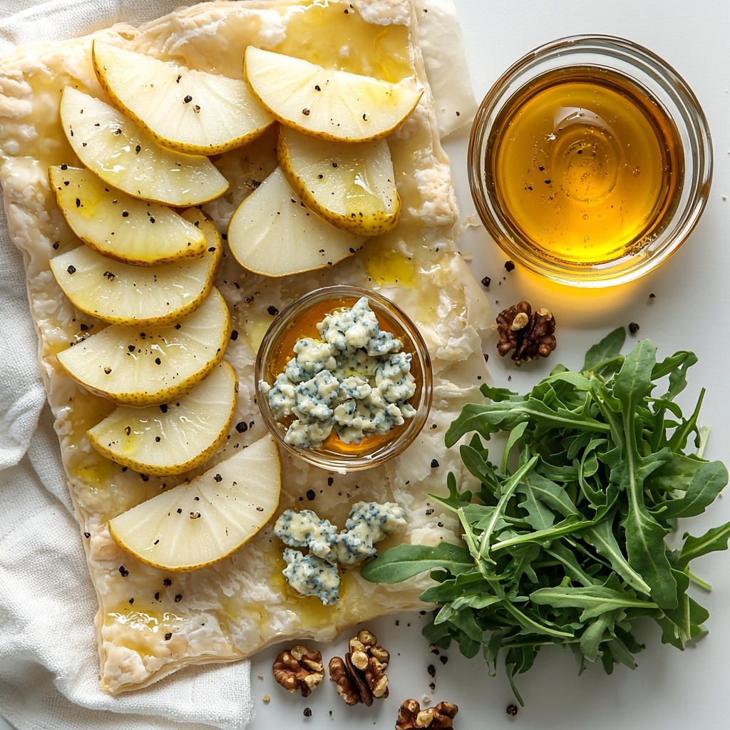 - Arrange the Pear Slices: Thinly slice the pears and arrange them in overlapping layers across the entire flatbread, ensuring full coverage for balanced sweetness in every bite.