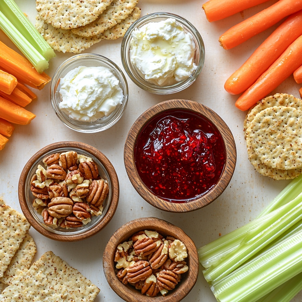 While this spread shines beautifully on its own, pairing it with a variety of sides amps up the experience. Classic choices like crispy crackers and slices of crusty baguette help scoop the creamy mixture perfectly. Also consider colorful raw vegetables—think celery sticks, bell pepper strips, or cucumber rounds—for a refreshing crunch that balances the rich cheeses and tangy jelly.