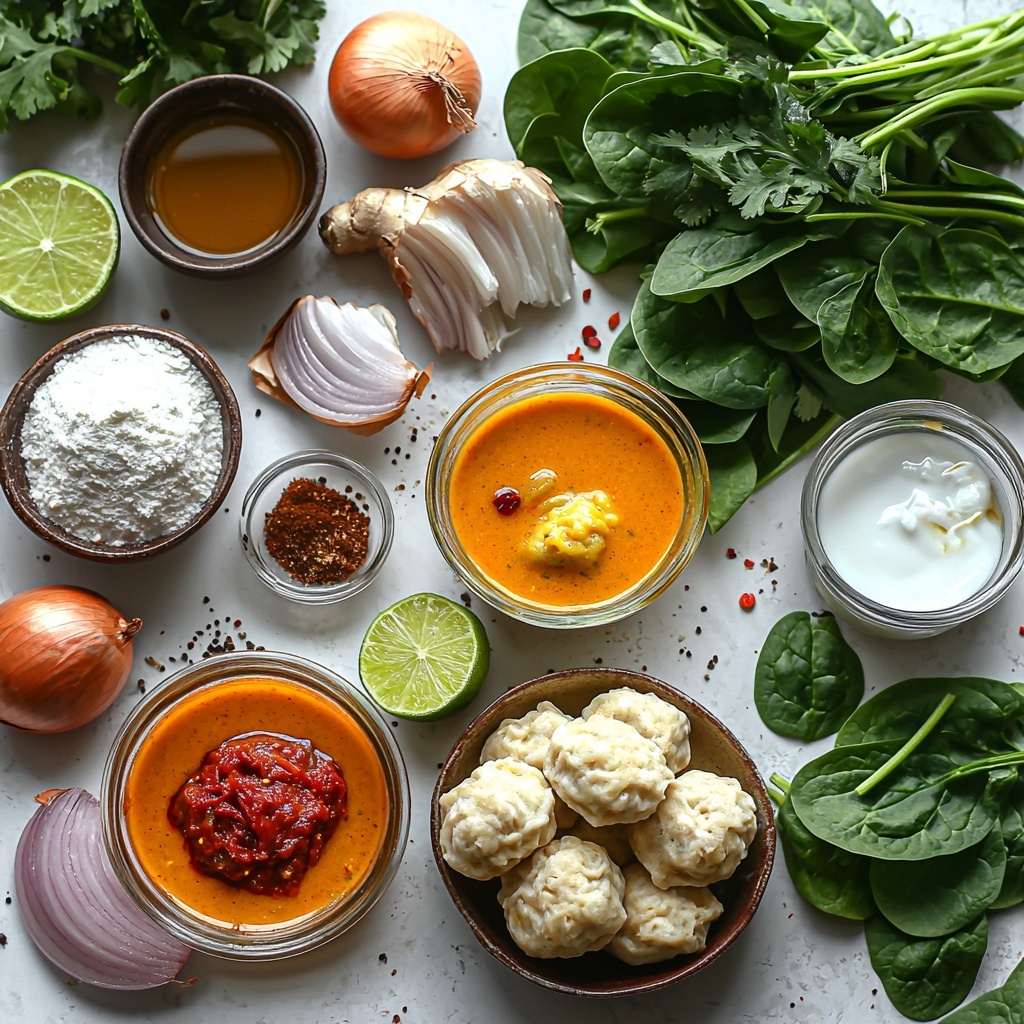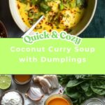 A comforting and quick coconut curry soup featuring aromatic spices, creamy coconut milk, and fluffy dumplings. This easy-to-make soup combines rich, fragrant curry flavors with tender greens and homemade dumplings for a warming and satisfying meal perfect for any day of the week.
