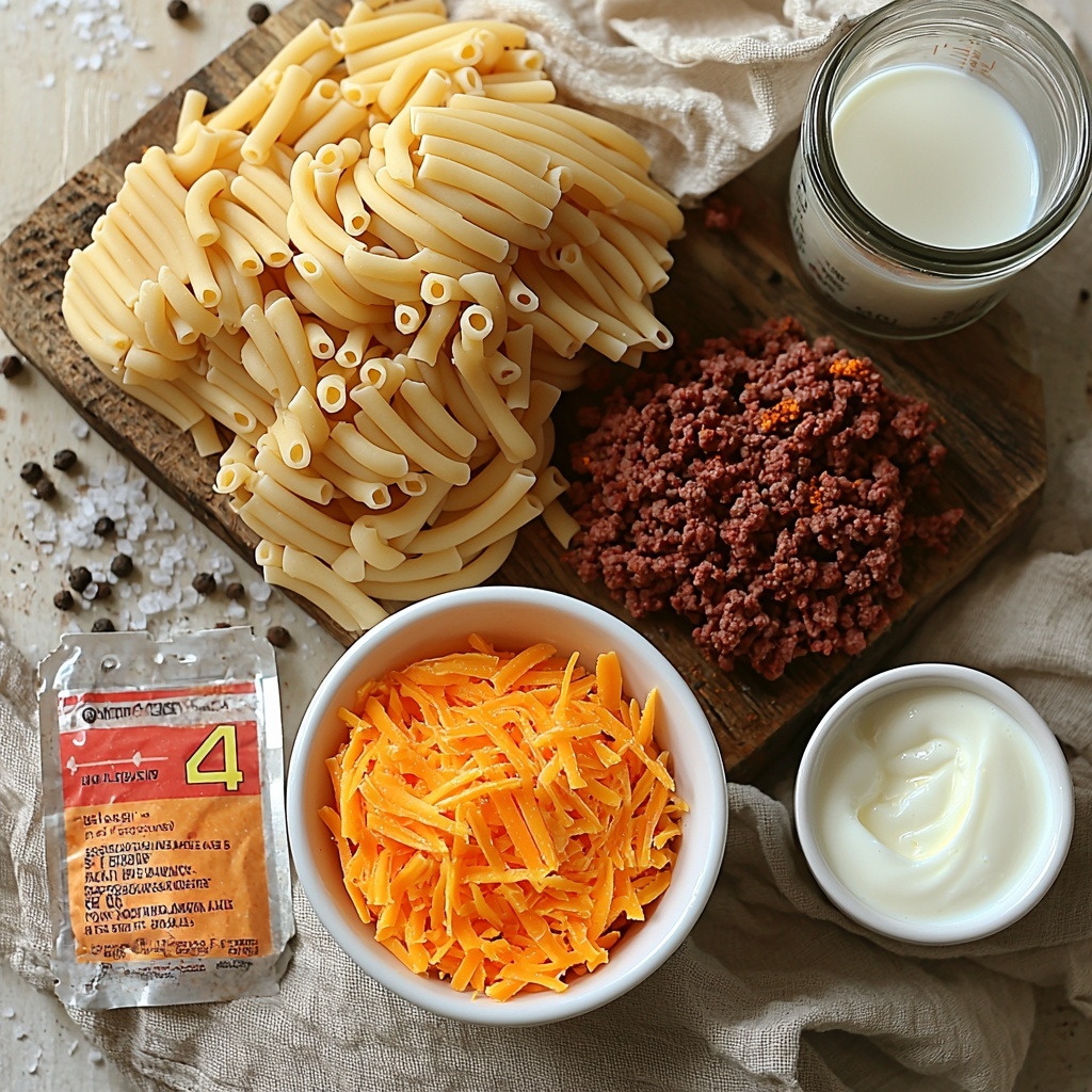 The magic of the Ranch Beef Cheddar Macaroni Recipe comes alive with just a handful of simple, familiar ingredients that each play a crucial role. From the pasta’s tender bite to the savory, cheesy beef mixture, every component works together to deliver maximum flavor and comfort.