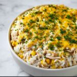 This Salsa Verde Chicken and Rice Skillet is a quick, flavorful one-pan meal combining tender shredded chicken, cooked rice, and vibrant salsa verde. Enhanced with creamy sour cream, sweet corn, and melted Monterey Jack cheese, this dish is perfect for an easy weeknight dinner. Topped with fresh cilantro for a burst of freshness, it’s both comforting and satisfying.