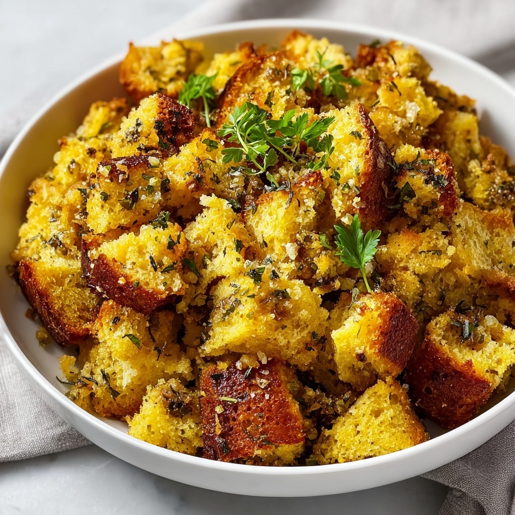 A sprinkle of fresh parsley or a few extra leaves of thyme on top right before serving adds a pop of green and a fresh herbal aroma. You can also add a light drizzle of melted butter to make the presentation even more inviting and to enhance the buttery richness of the stuffing.