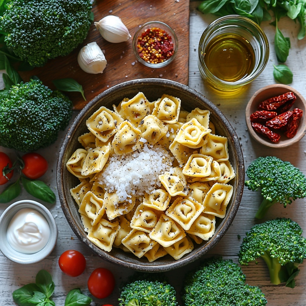 - Make Cheesy Sauce: In a small bowl, combine heavy cream or half-and-half, minced garlic, Italian seasoning, half the shredded mozzarella, and all the grated Parmesan. Pour this creamy mixture over the tortellini and broccoli, tossing gently to coat everything evenly.