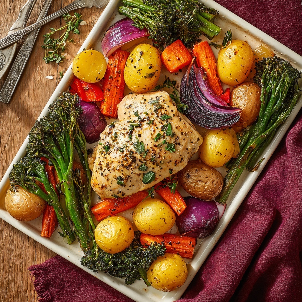 This sheet pan chicken and vegetables recipe offers a simple, wholesome meal featuring juicy roasted chicken thighs or breasts paired with a colorful medley of potatoes, carrots, and broccoli. Perfect for busy weeknights, this easy, gluten-free one-pan dish is seasoned with olive oil, garlic powder, salt, and pepper, then baked to perfection, delivering comforting flavors and balanced nutrition.