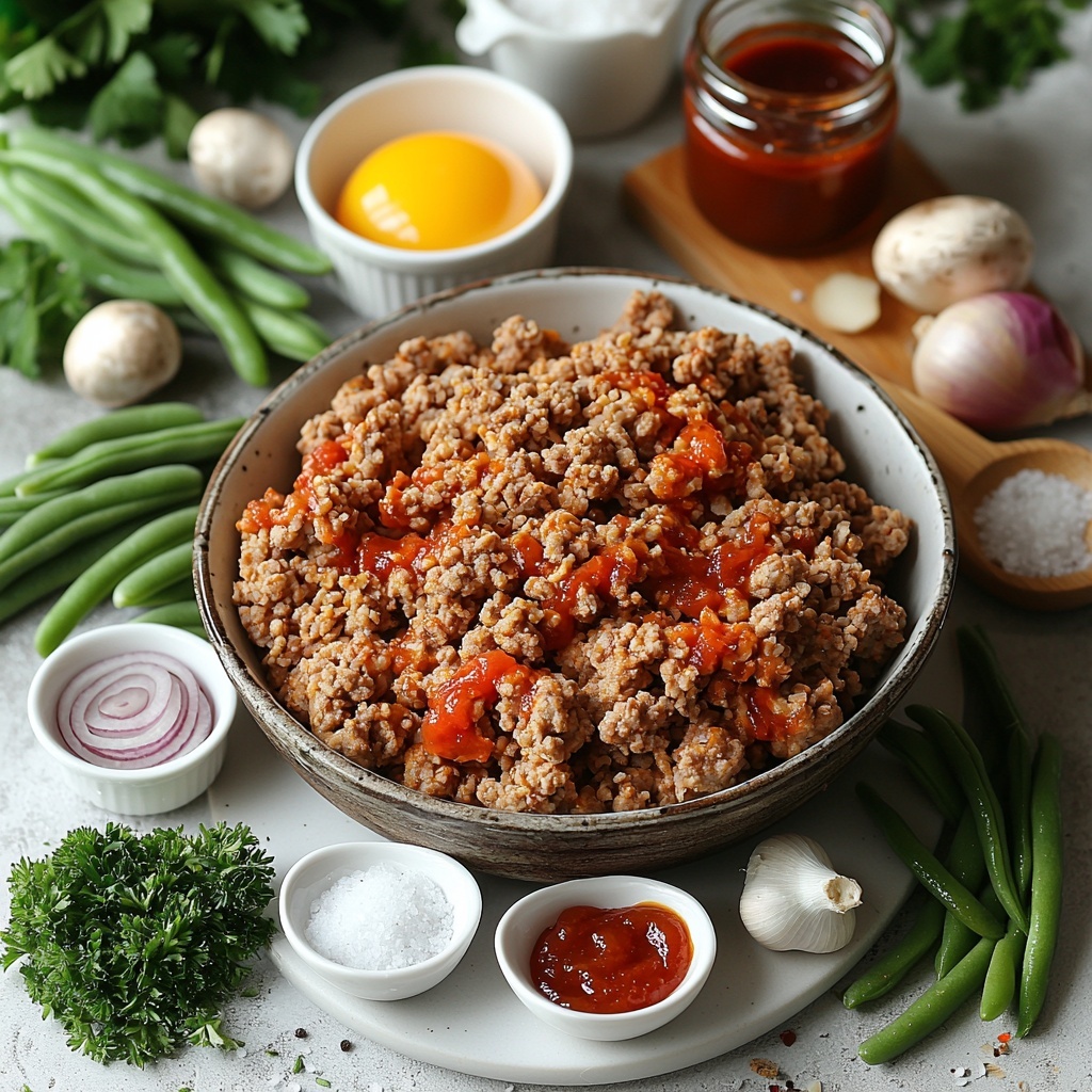 This recipe keeps things simple but powerful: every ingredient plays a key role in building layers of flavor and texture. From the ground meat to the fresh herbs and crunchy veggies, here’s what you’ll want to gather before you start cooking.