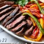 12. Serve: Slice the rested steak across the grain into thin strips about ½- to ¾-inch thick. Arrange steak slices on a platter and drizzle any juices over them. Serve the sliced steak alongside the sautéed vegetables with warm tortillas and toppings such as chopped cilantro, sliced avocado, Greek yogurt or sour cream, and crumbled queso fresco or feta.