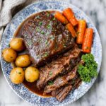 A sprinkle of freshly chopped parsley adds a bright, fresh contrast to the hearty, slow-cooked roast beef. For an extra touch, a dollop of horseradish cream or a few coarse-grain mustard drops can elevate the dish with a pleasant zing.