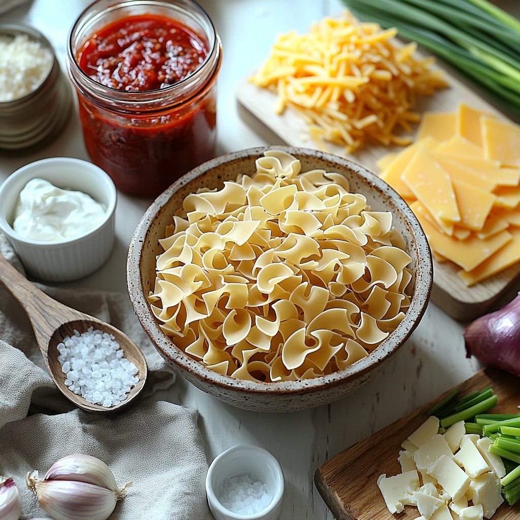 Start by preheating your oven to 350°F and greasing a 9×13 inch baking dish to ensure easy cleanup. Bring a large pot of water to a low boil and cook the wide egg noodles until al dente, about the texture that’s tender yet still has a slight bite. Drain and rinse under cold water to stop the cooking—this step keeps your noodles perfect during baking.