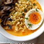 This Spicy Coconut Curry Ramen is a flavorful and warming Asian-inspired soup featuring a rich coconut curry broth, tender shiitake mushrooms, and perfectly cooked ramen noodles. Enhanced with garlic, ginger, and a blend of spices including turmeric and Thai red curry paste, this recipe comes together in just 20 minutes for a satisfying meal that balances heat and creaminess. Topped with boiled eggs, sesame seeds, and fresh chives, it’s an easy and delicious way to enjoy a comforting bowl of ramen at home.