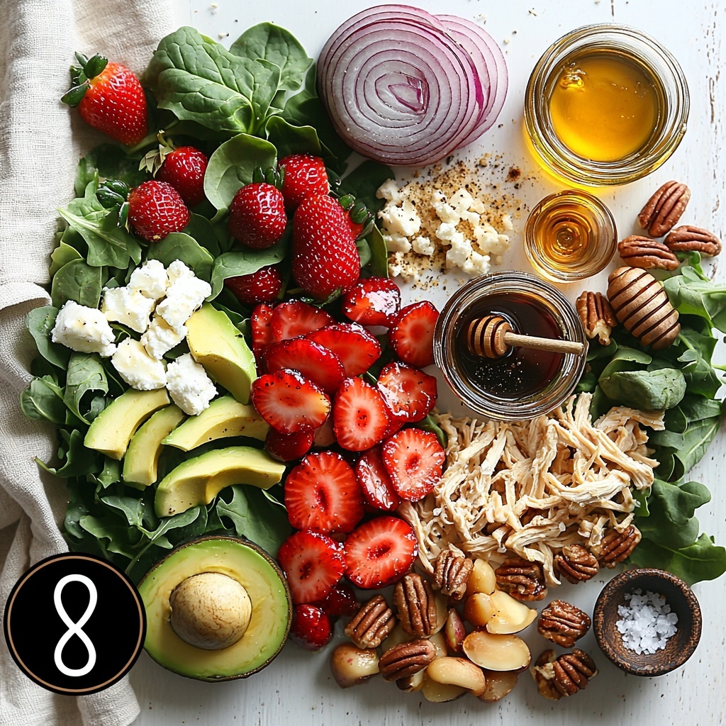 The magic behind Strawberry Chicken Salad: The Ultimate Irresistible Summer Favorite Recipe lies in its fresh, simple ingredients that each play a special role. From crisp greens providing a vibrant base to juicy strawberries adding natural sweetness and crunchy pecans delivering delightful texture, every component is essential for its flavor harmony.