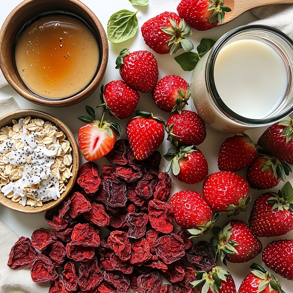 • 1 cup freeze-dried strawberries (or fresh strawberries, if you prefer): Adds a natural, intense strawberry flavor and a beautiful pop of color.