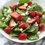A refreshing and vibrant Sweet Strawberry Spinach Salad featuring tender baby spinach, juicy strawberries, tangy goat cheese, and crunchy candied pecans, all brought together with a creamy, dreamy poppy seed dressing chilled to perfection. This salad is perfect for a light lunch or a delightful side dish that balances sweet, savory, and tangy flavors in every bite.
